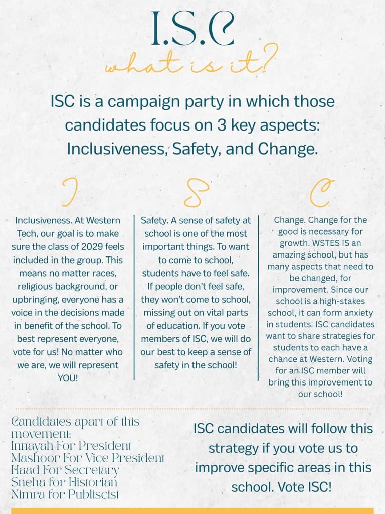 I’m excited to be your Vice President for the class of 2029! I believe students should have a voice that creates real, tangible impact. As the Vice President, I’ll work with the council, along with the school and even BCPS, to implement inclusivity, safety, and change. This includes, but is NOT limited to, advocating for inclusive school lunches that cater to everyone, more ways for students to showcase their culture, more mental health services, such as a dedicated place for students struggling, a cleaner school campus (such as fixing the bathrooms), and a nicer one too! WT’s campus looks bland outside right now, but that can be changed :) Safety is another thing we’re pushing for—why are the doors always unlocked, and why are teachers allowed to get away with disgusting things? Finally, we want more student activities. This includes more field trips and spirit activities so that students can unwind from the stress of school with their peers. It’s not limited to that, however! I’m open-minded and am more than happy to listen to your concerns/ideas. In terms of experience, I’m currently a board member for WT MSA. I also served as the Legislative Affairs Coordinator for BCSC/JC last year, where I talked and negotiated with lawmakers in Annapolis on bills that affected us. I also founded my middle school’s MSA, where I planned events, grew membership, and learned what it takes to manage a student organization. As the Vice President for the class of ‘29, I’ll be advocating tirelessly for my peers, making sure your voice is heard.